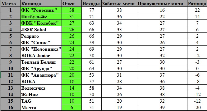 Турнирная таблица