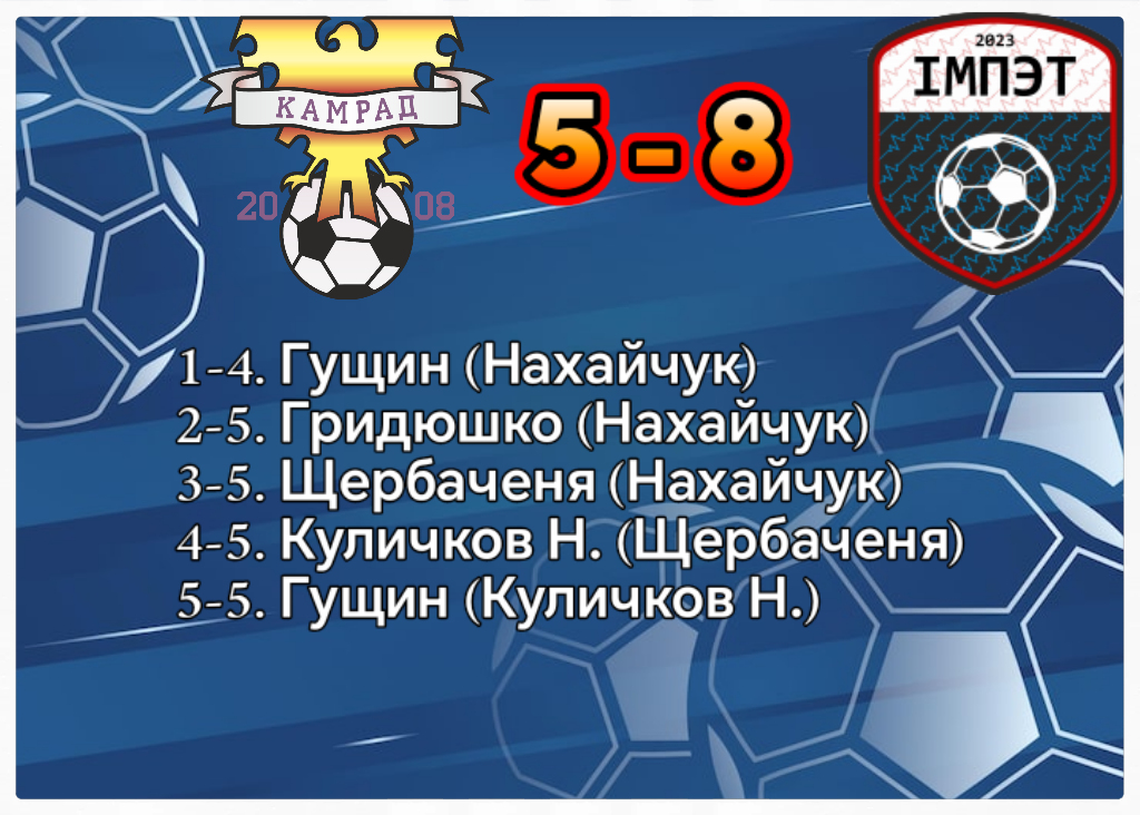 СЛМФ. Second League SLMF. 16 тур 01.03.2026; 21-30; СК "Атлет" ФК "Камрад" 5-8 (1-5) Импэт; |
